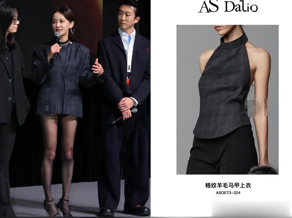 按照模特的穿搭,西装下半身是搭配黑色裤子的,而她选择了很性感的丝袜。