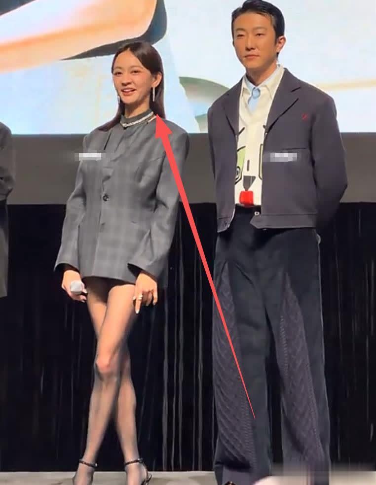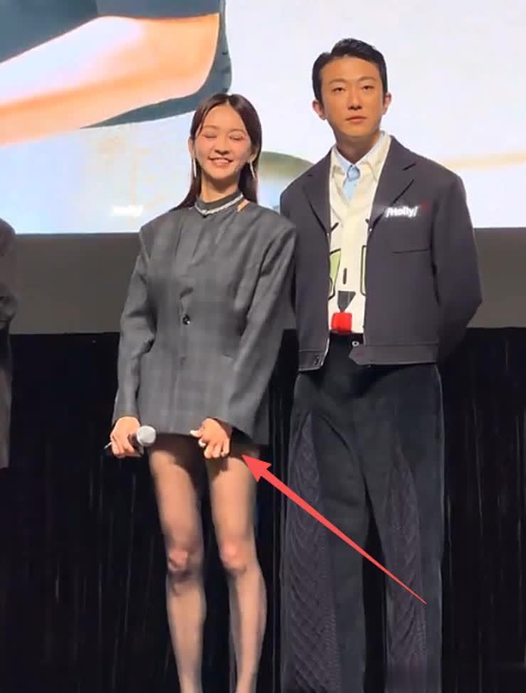 在台上讲话时,她时不时就要拽下上衣的衣角,或者把两条腿交叉的放,防止走光。